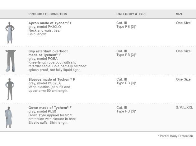 Tychem® F accessoires zijn speciaal ontworpen voor gebruik met onze Tychem® kleding.